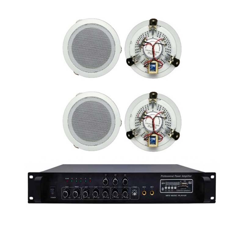 Hệ thống thường bao gồm loa âm trần, amply và nguồn phát nhạc như điện thoại, USB hoặc máy tính. Các thiết bị này kết nối đơn giản, dễ sử dụng, phù hợp ngay cả với người không chuyên về kỹ thuật.